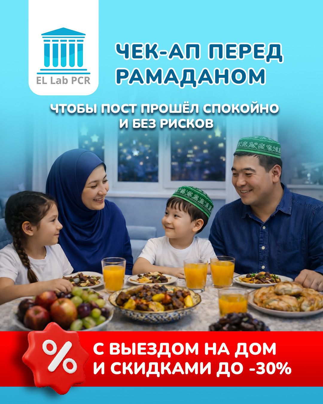 Различные пакеты для всей семьи перед священным месяцем Рамадан Акция до 31 марта 2026 Женский, мужской и детский модули доступны при сдаче базового чек-апа
